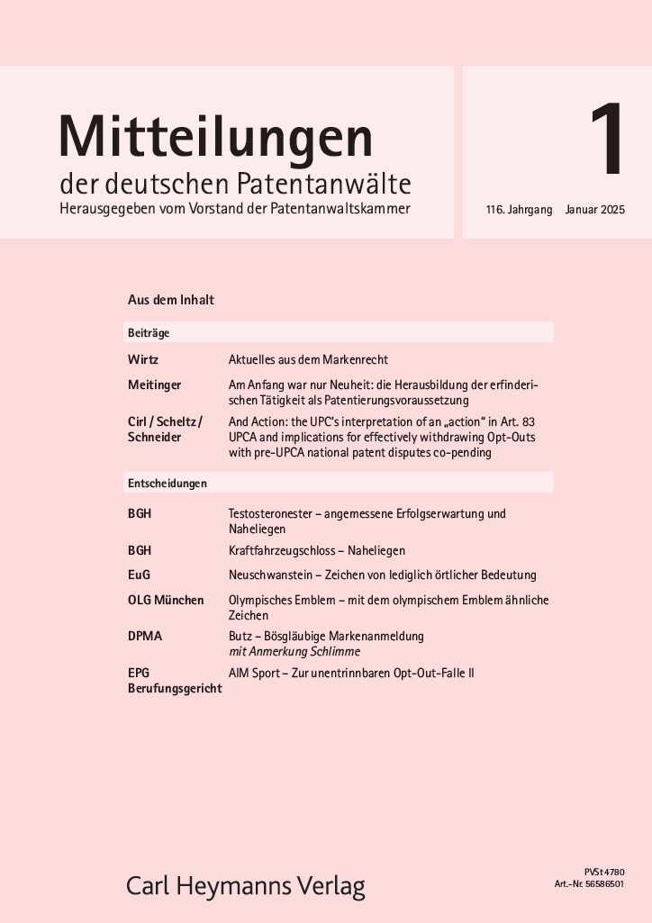 Dr. Meitinger beschreibt in der Januar-Ausgabe des Jahres 2025 die Entwicklung des Patentierungskriteriums der erfinderischen Tätigkeit.