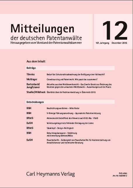 In diesem Artikel in der April-Ausgabe des Jahres 2017 wird beschrieben, dass "namenloses Know-How" einer Organisation eine Erfindung begründen kann. Der Urheber ist hierbei vordergründig das betreffende Unternehmen. Es wird vorgeschlagen, wie dieses Unternehmen bei der Zuordnung des Eigentums der Erfindung berücksichtigt werden kann, ohne dabei das Erfinderprinzip des Patentrechts zu verletzen.